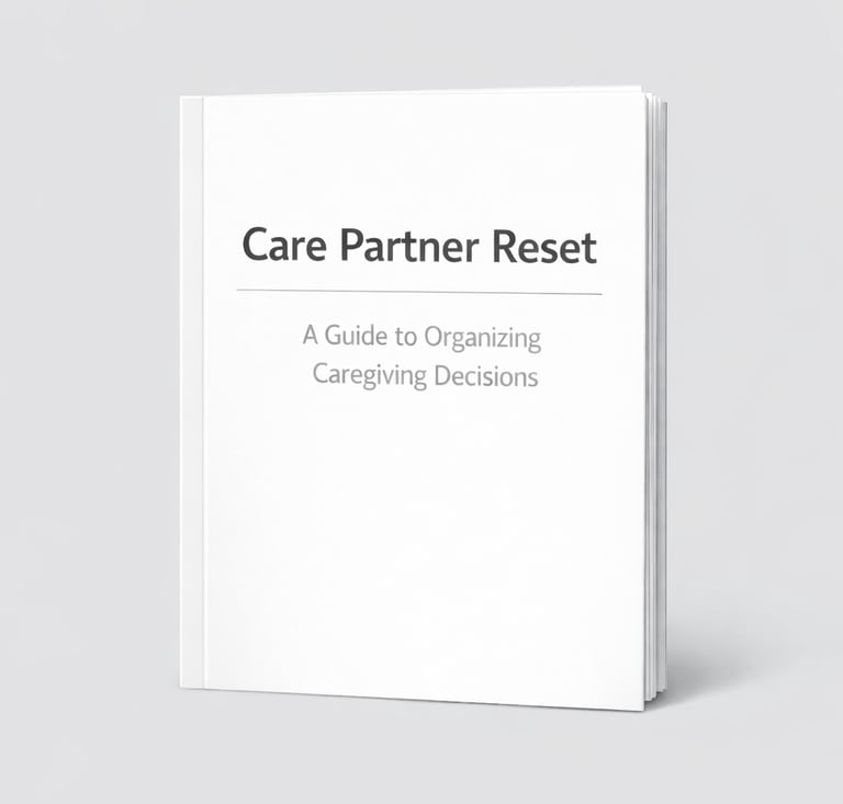 It focuses on organizing decisions, clarifying roles, and restoring direction when information and responsibility become difficult to prioritize. Care Partner Reset is non-clinical and does not provide therapy, medical advice, or ongoing support.